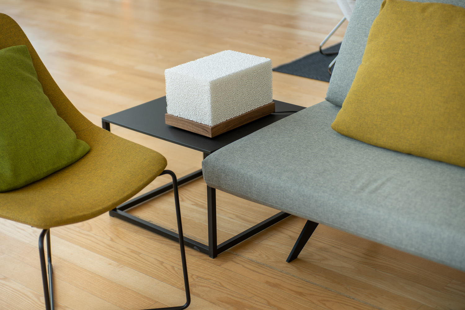 In addition to its active air purifying function, the ACEAIR table lamp also has the function of a design element with a pleasant appearance of the light passing through the ceramics structure. The lamp is made of natural materials such as a stylish hardwood base and a pure corundum ceramic lampshade.